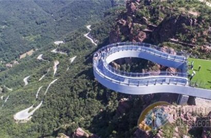 2018年6月12日,河南省新密市,經(jīng)過8個(gè)月的建設(shè),伏羲山旅游區(qū)的懸空玻璃環(huán)廊正式落成,游人走在環(huán)廊上感受“天空漫步”的刺激體驗(yàn)。據(jù)了解,伏羲山玻璃環(huán)廊將于6月16日起對(duì)外開放,該橋采用無斜拉索設(shè)計(jì),整體工程用鋼量超3000噸,橋面使用150塊三層鋼化夾膠玻璃鋪設(shè),距離峽谷地面360米,環(huán)廊伸出懸崖30米。比美國科羅拉多大峽谷號(hào)稱“世界第八大奇跡”的玻璃環(huán)廊還長出近9米,可謂是“世界很長的高空玻璃環(huán)廊”。
