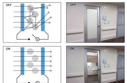 智能調(diào)光玻璃也叫電控調(diào)光玻璃,能夠通過(guò)電來(lái)控制玻璃的透明度。主要工作原理是在玻璃之間加裝一層液晶調(diào)光膜(PDLC)。